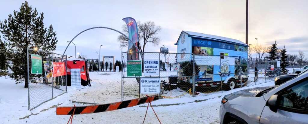 December 15, 2025 – On Saturday, Nov 29, the Kiwanis Club of South Edmonton Christmas Tree Lot opened, welcoming our loyal customers again for 2025. All was set up and prepared, and, as is deemed appropriate for this time of year, the weather was cold and snowy.